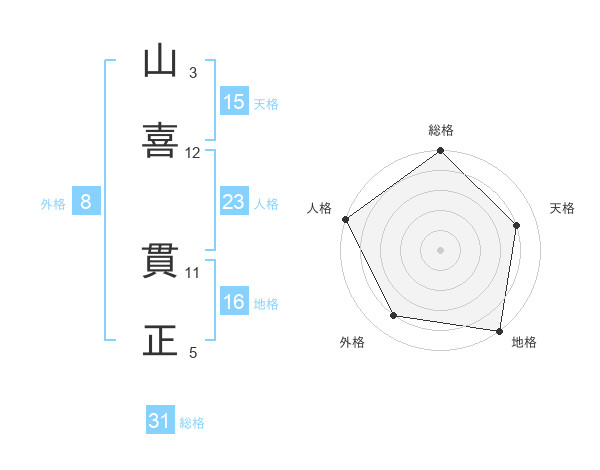 山喜 貫正さんを姓名の画数から五運を鑑定