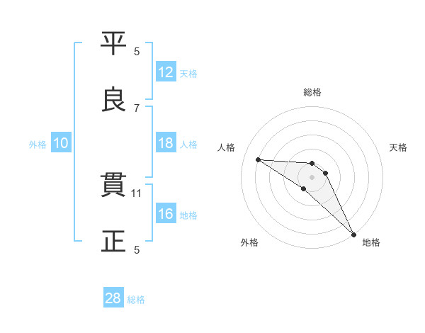 平良 貫正さんの天格は12画の1点!