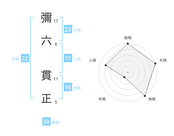 彌六 貫正さんの人格は17画の4点!