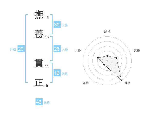 撫養 貫正さんの天格は30画の2点!