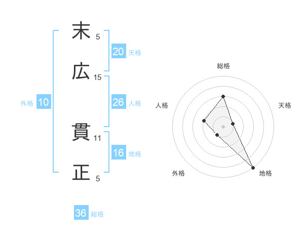 末広 貫正さんの地格は16画の5点!