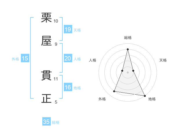 栗屋 貫正さんの総格は35画の4点!