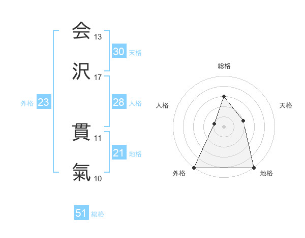 会沢 貫氣さんを姓名の画数から五運を鑑定