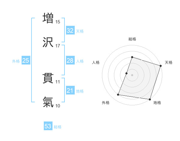 増沢 貫氣さんの天格は32画の5点!