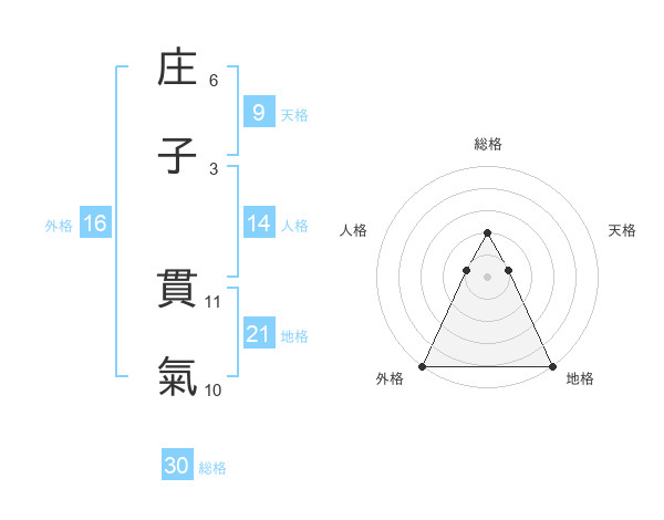 庄子 貫氣さんの総格は30画の2点!