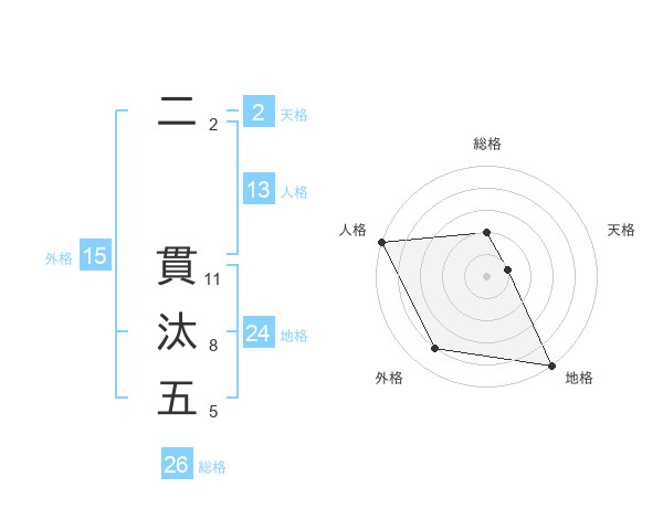 二 貫汰五さんの総格は26画の2点!