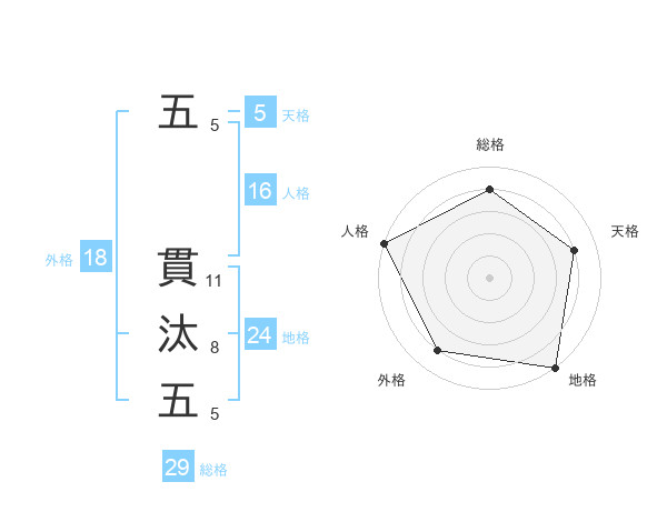 五 貫汰五さんの総格は29画の4点!