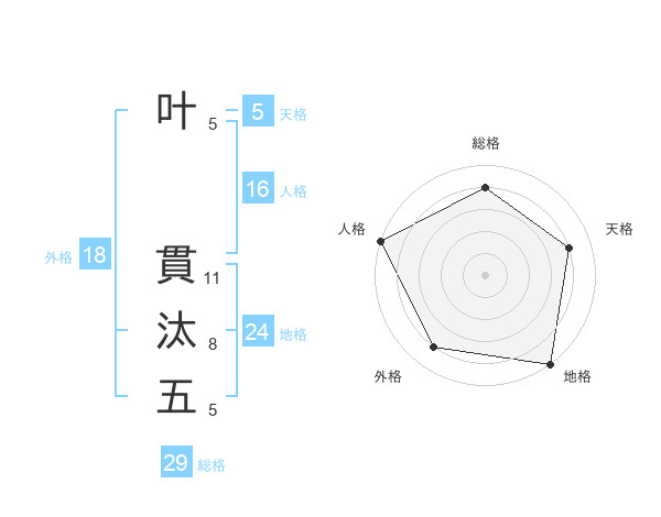 叶 貫汰五さんを姓名の画数から五運を鑑定