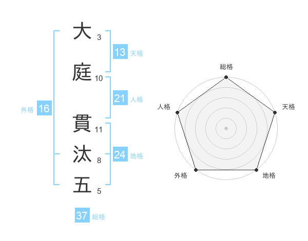 大庭 貫汰五さんの総格は37画の5点!