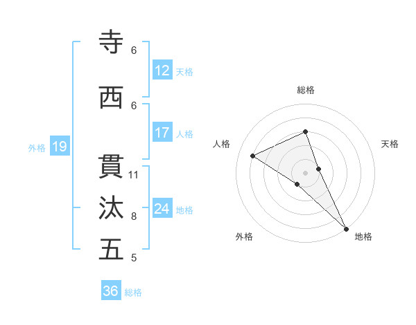 寺西 貫汰五さんの総格は36画の3点!