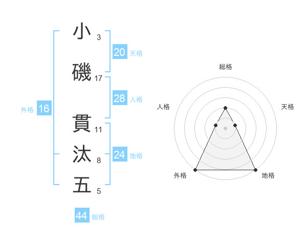 小磯 貫汰五さんの総格は44画の2点!
