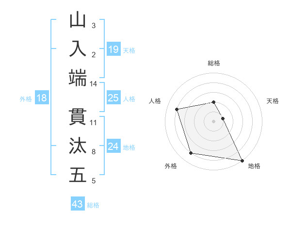 山入端 貫汰五さんを姓名の画数から五運を鑑定