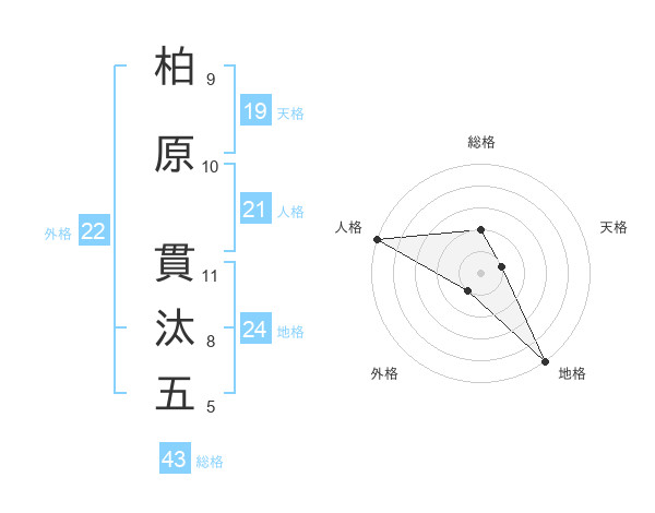 柏原 貫汰五さんを姓名の画数から五運を鑑定