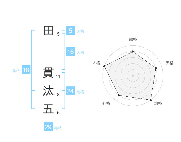 田 貫汰五さんを姓名の画数から五運を鑑定