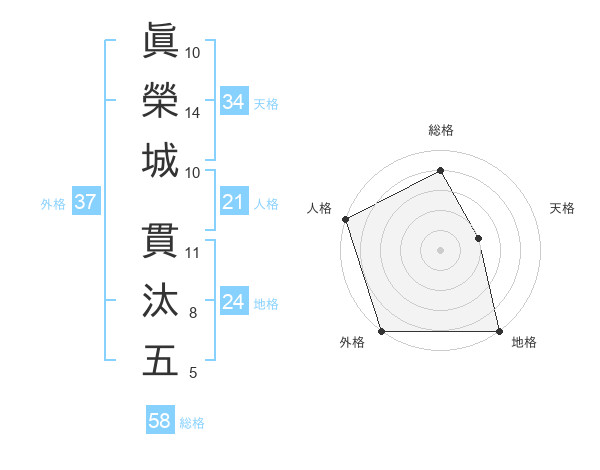 眞榮城 貫汰五さんの人格は21画の5点!