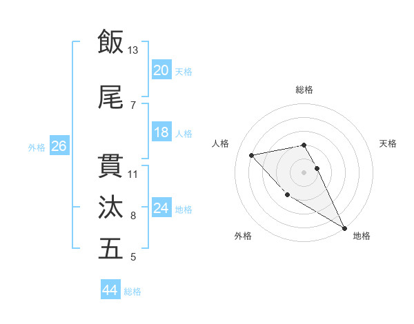飯尾 貫汰五さんを姓名の画数から五運を鑑定