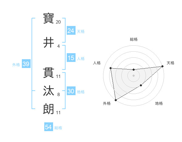 寶井 貫汰朗さんを姓名の画数から五運を鑑定