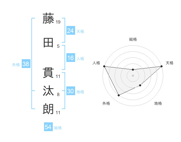 藤田 貫汰朗さんを姓名の画数から五運を鑑定