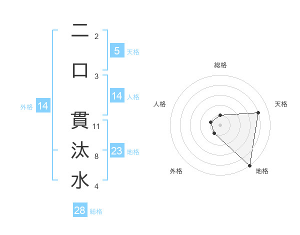 二口 貫汰水さんを姓名の画数から五運を鑑定