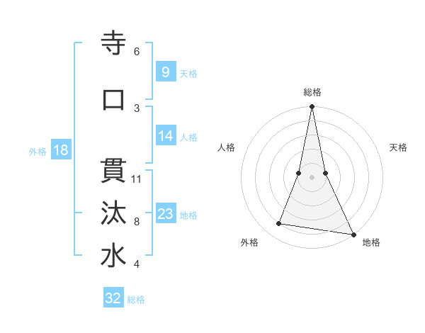 寺口 貫汰水さんの総格は32画の5点!