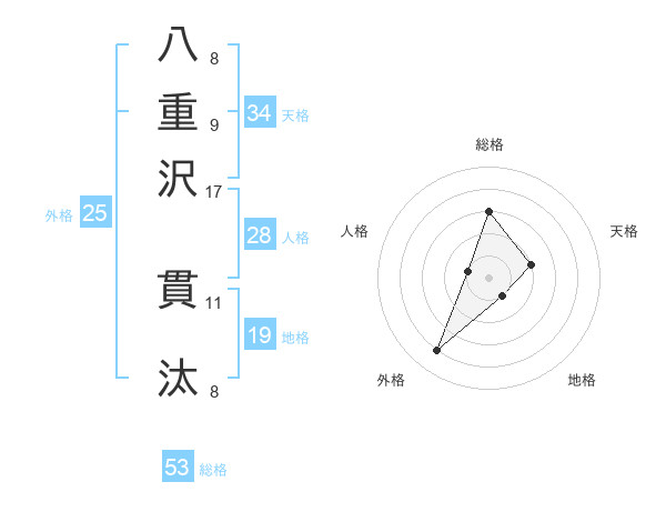 八重沢 貫汰さんの総格は53画の3点!