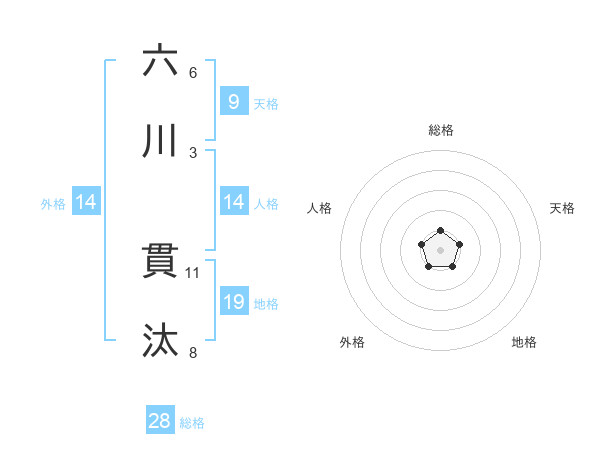 六川 貫汰さんの総格は28画の1点!