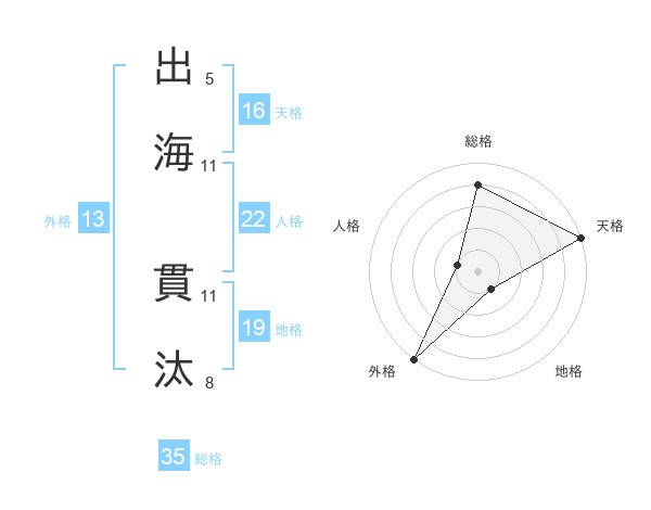 出海 貫汰さんの外格は13画の5点!