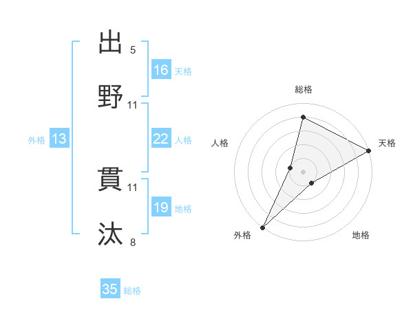 出野 貫汰さんの外格は13画の5点!