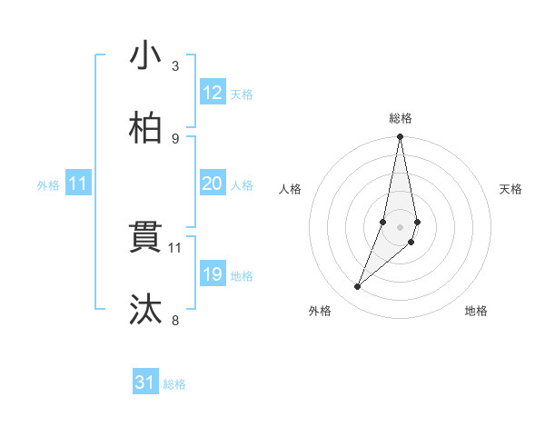 小柏 貫汰さんを姓名の画数から五運を鑑定