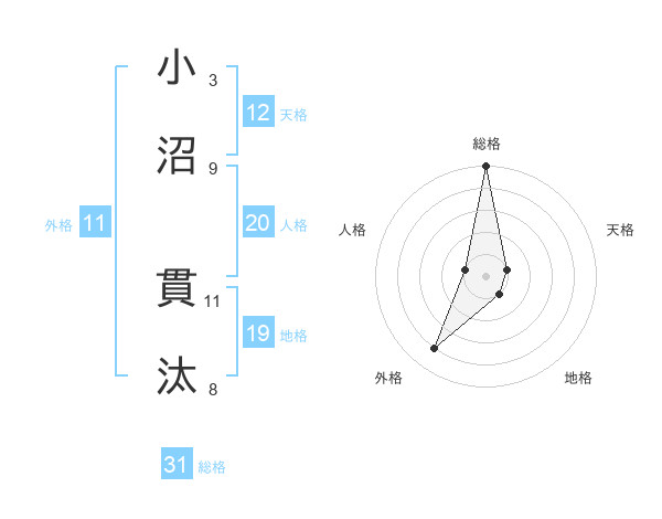 小沼 貫汰さんを姓名の画数から五運を鑑定