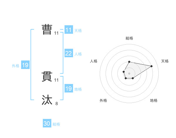 曹 貫汰さんの人格は22画の1点!