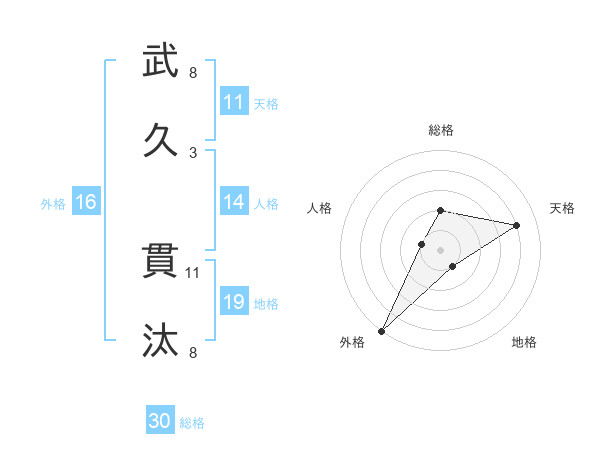 武久 貫汰さんを姓名の画数から五運を鑑定