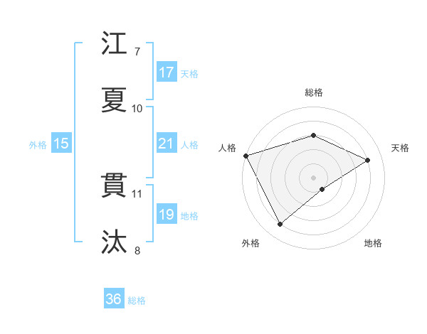 江夏 貫汰さんを姓名の画数から五運を鑑定