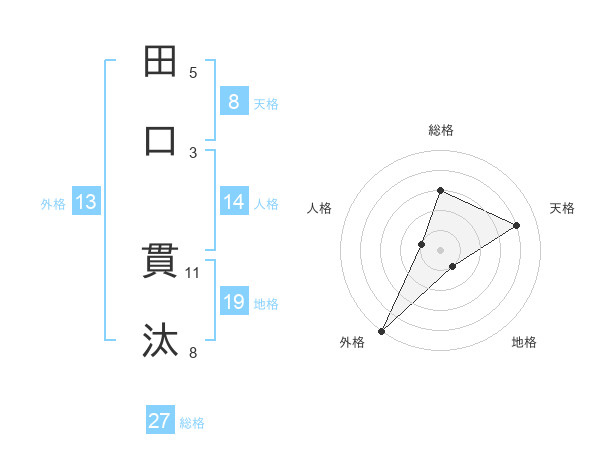 田口 貫汰さんを姓名の画数から五運を鑑定