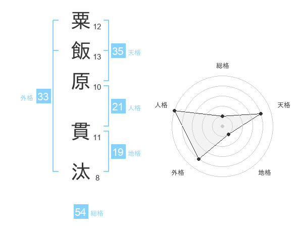 粟飯原 貫汰さんの人格は21画の5点!