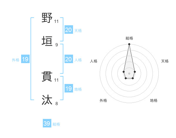 野垣 貫汰さんの総格は39画の5点!