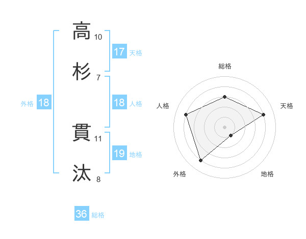 高杉 貫汰さんを姓名の画数から五運を鑑定