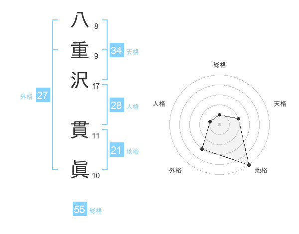 八重沢 貫眞さんを姓名の画数から五運を鑑定