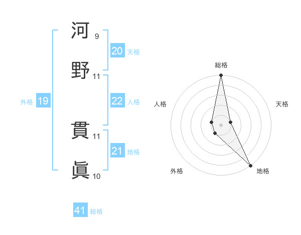 河野 貫眞さんを姓名の画数から五運を鑑定