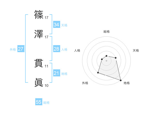 篠澤 貫眞さんを姓名の画数から五運を鑑定