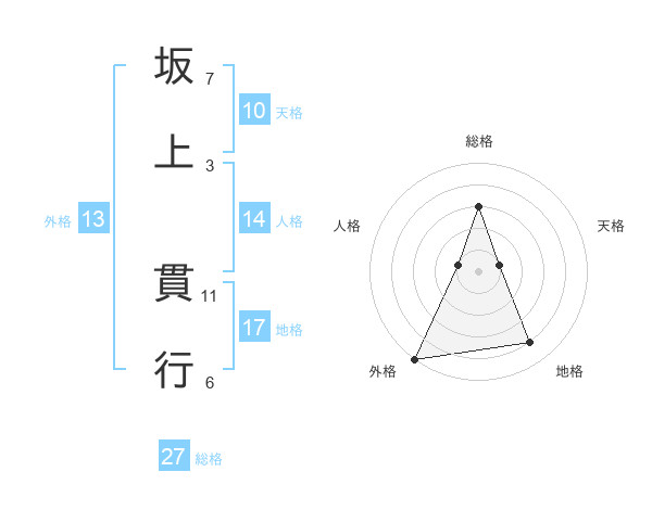 坂上 貫行さんを姓名の画数から五運を鑑定