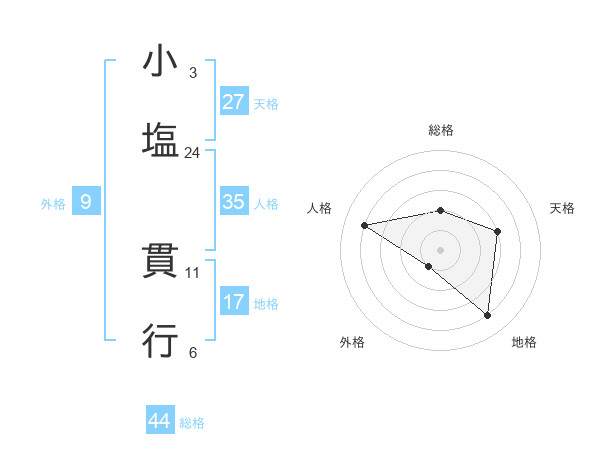 小塩 貫行さんを姓名の画数から五運を鑑定