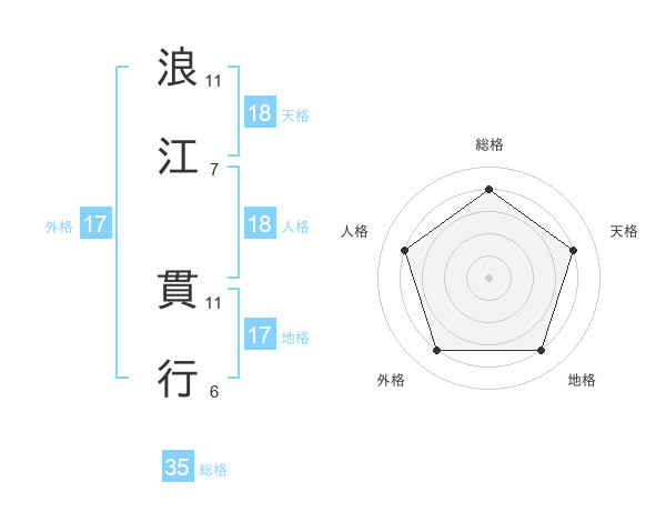 浪江 貫行さんを姓名の画数から五運を鑑定
