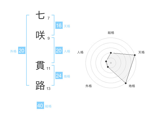 七咲 貫路さんの総格は40画の2点!