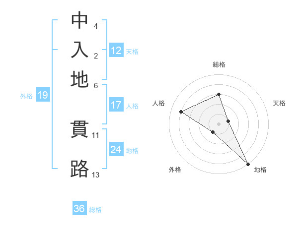 中入地 貫路さんの天格は12画の1点!