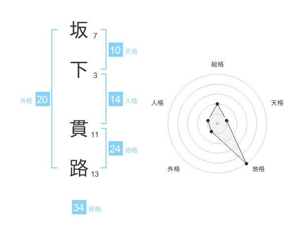 坂下 貫路さんを姓名の画数から五運を鑑定