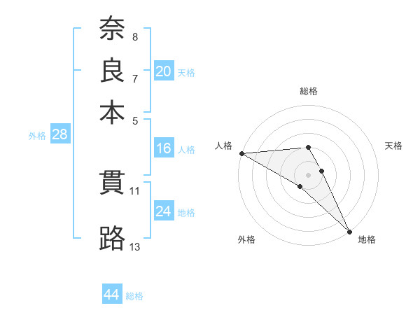 奈良本 貫路さんを姓名の画数から五運を鑑定