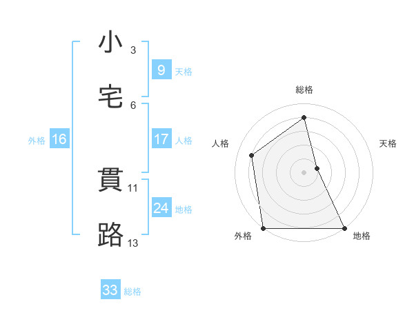 小宅 貫路さんを姓名の画数から五運を鑑定