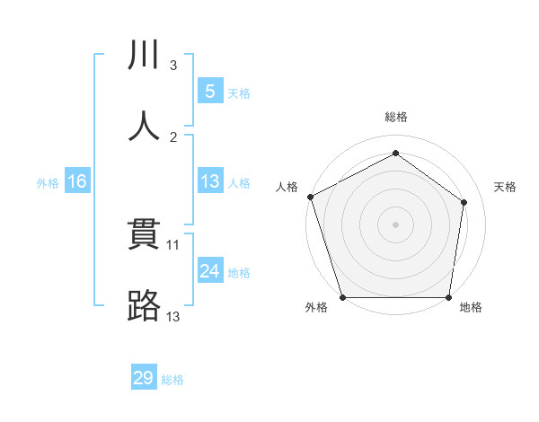 川人 貫路さんの総格は29画の4点!