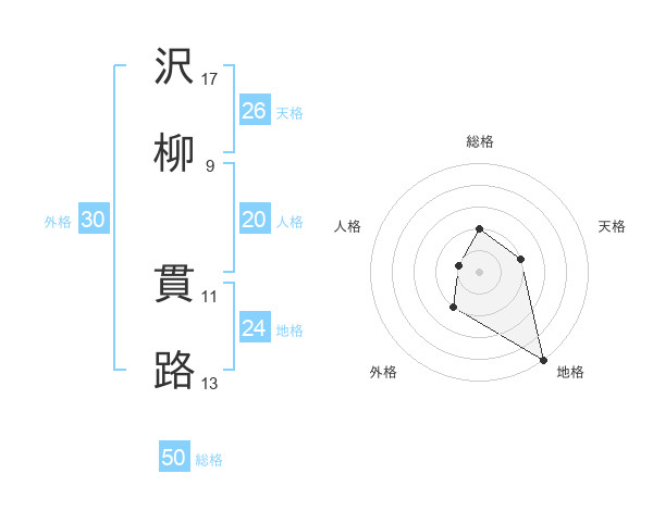 沢柳 貫路さんの総格は50画の2点!